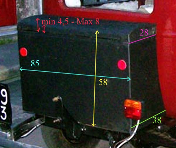 Modification du 16 février 2006 : Philippe m’a demandé les dimensions de ma malle arrière, je me suis dit que cela pouvait aussi en intéresser d’autres, je publie donc une photo siupplémentaire :